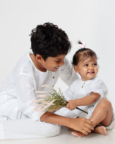 ‘Lappet’ is a style where the warp and weft of your cotton fabric is woven in such a way that it creates an intricate self-pattern. Different parts of the fabric catch light differently giving the garment extra style and depth.