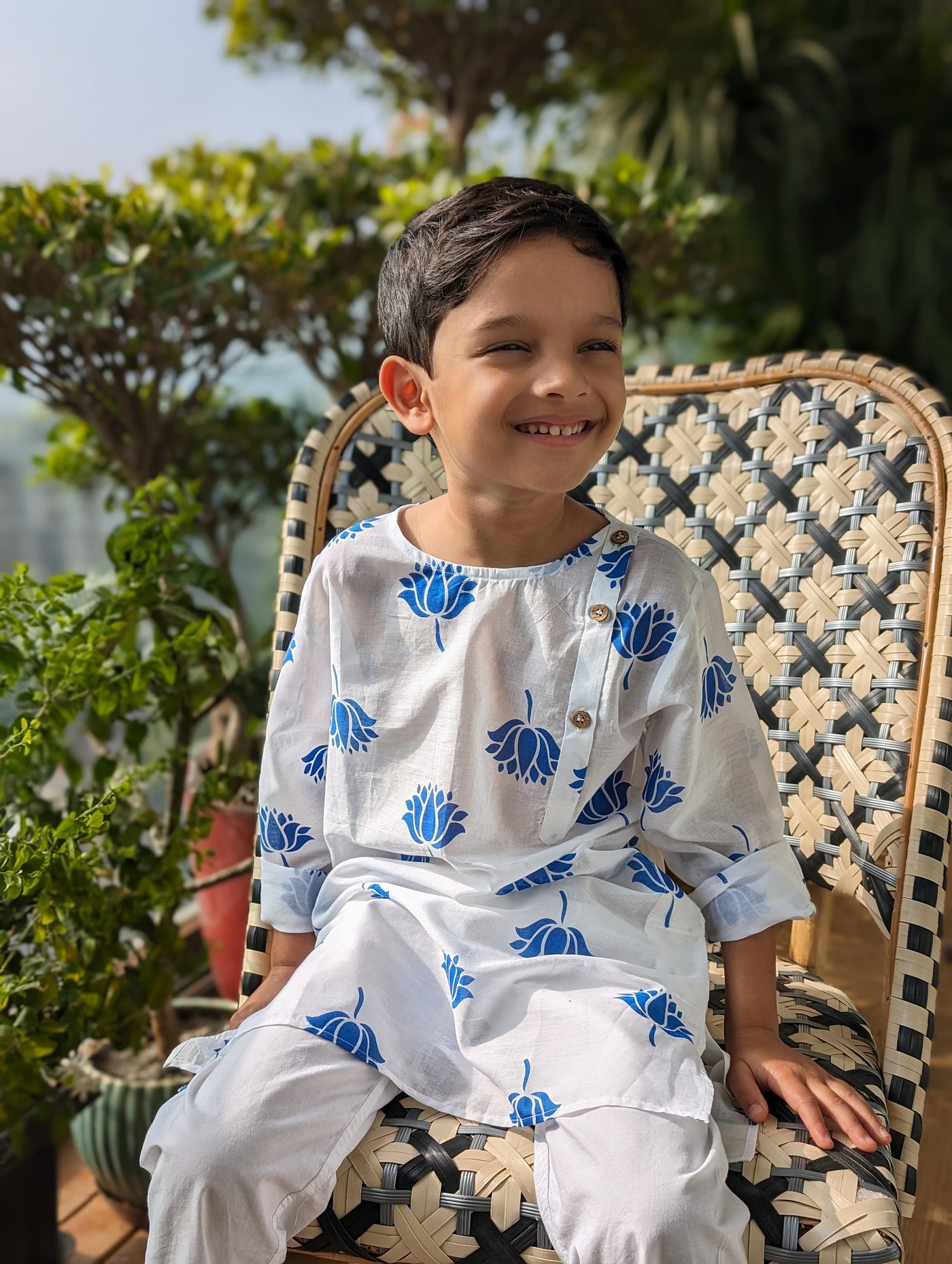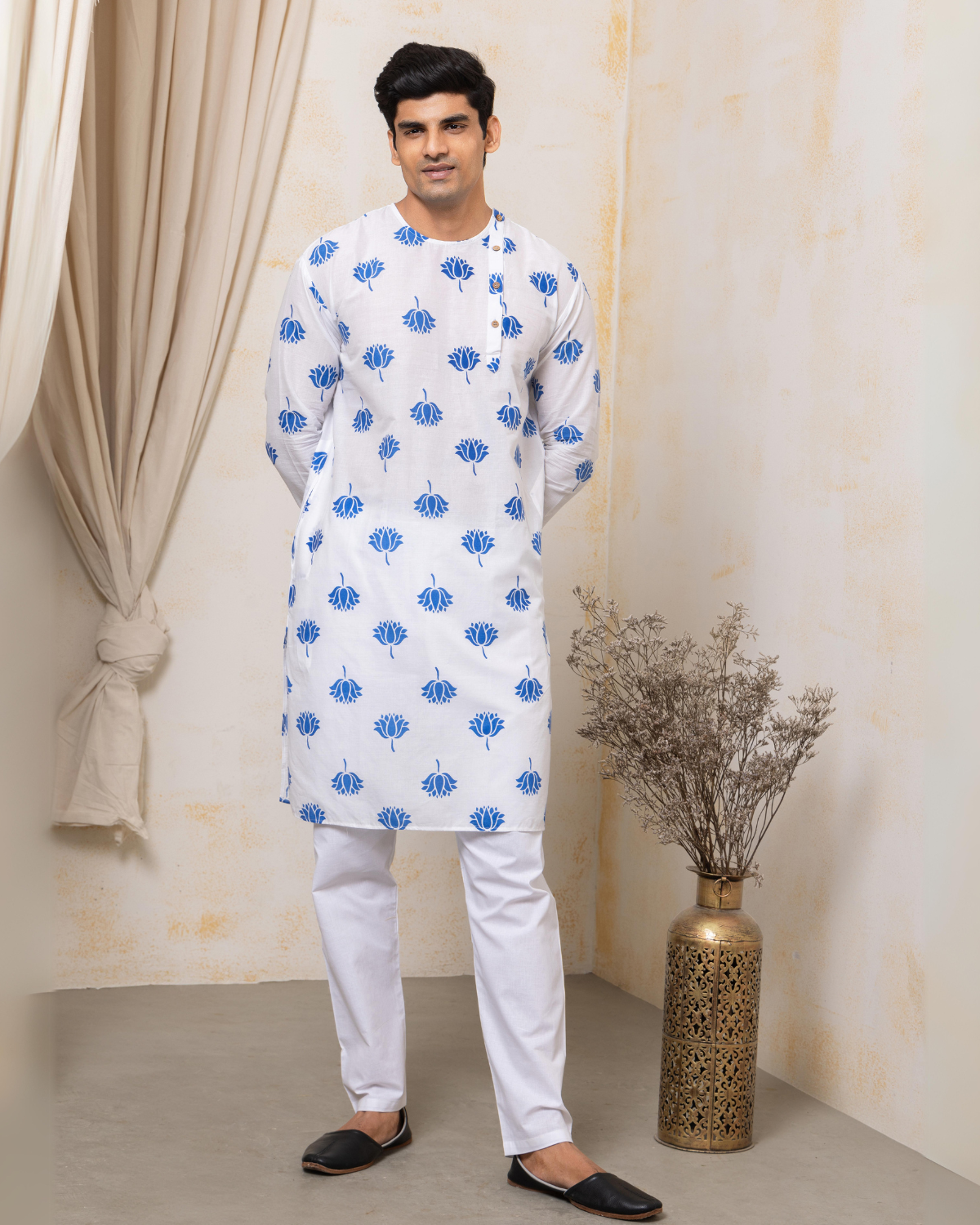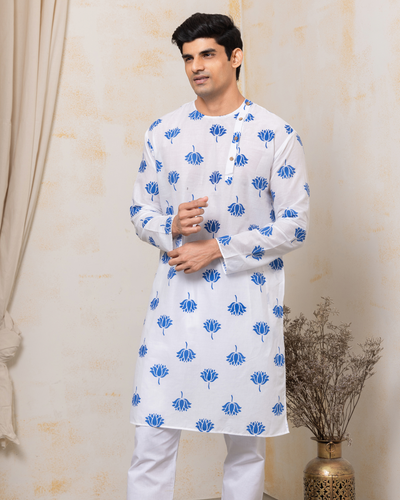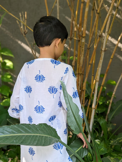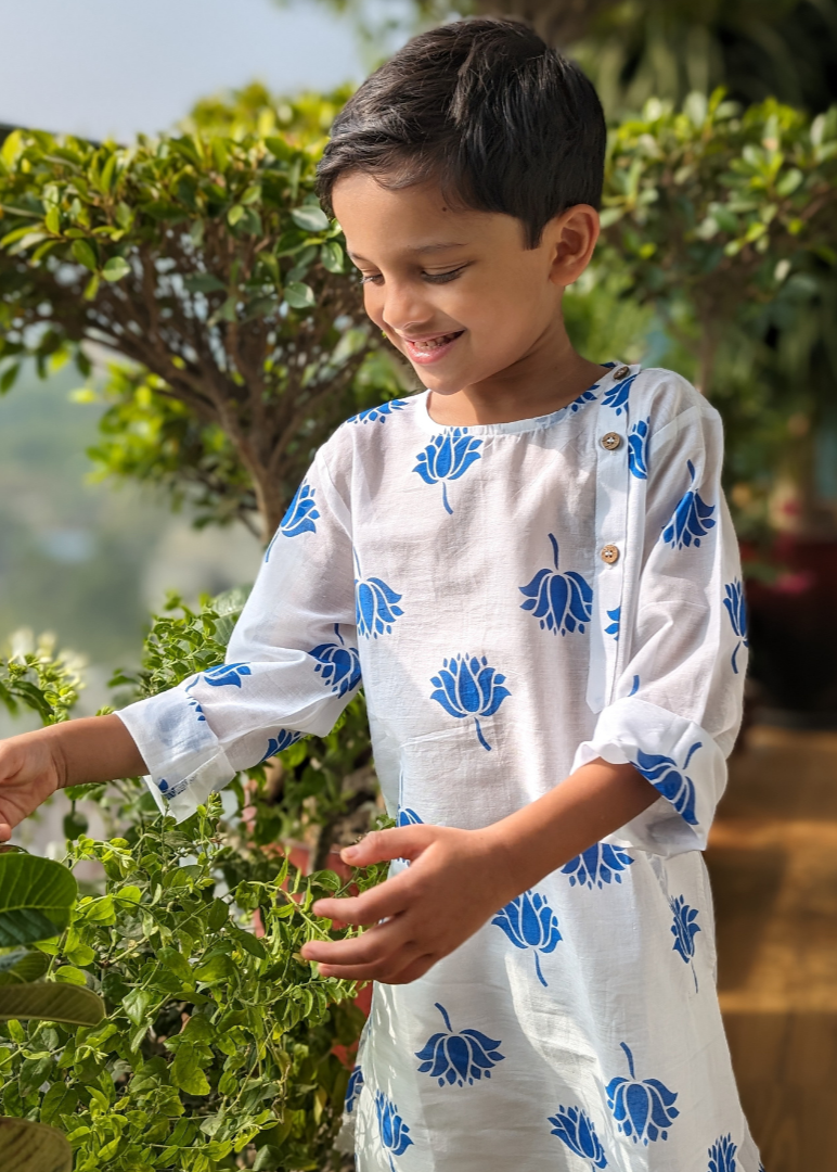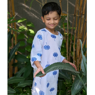 Malmal Kurta for Boys, Men | Indian Lotus, Blue