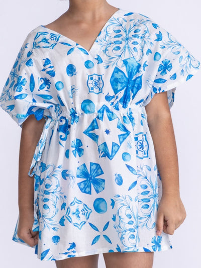 Girls Cotton Beach Kaftan Dress | Azure