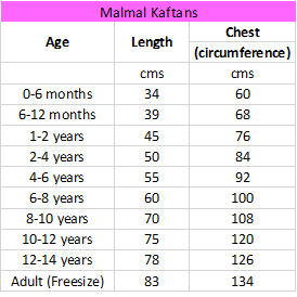 Sizing tips - Our kaftans and loose and breezy, with a tie string to tighten as you like. We dislike size labels on adult clothes and that's why our Adult size kaftan is a comfortable Free Size to cater to all body types.
