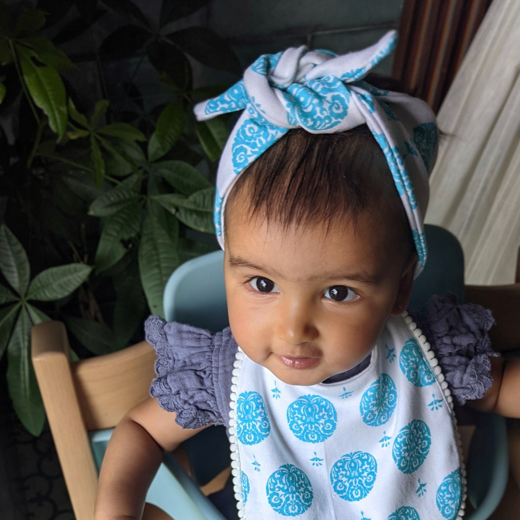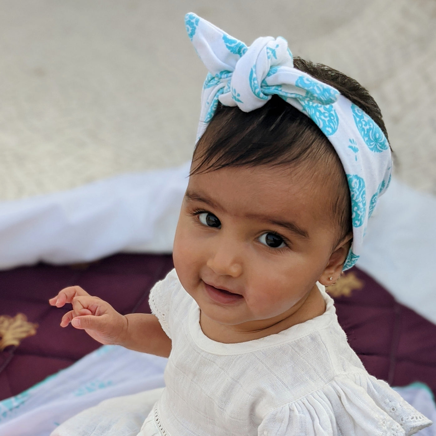 Cotton Adjustable Hairband - Alpona (Light Blue)