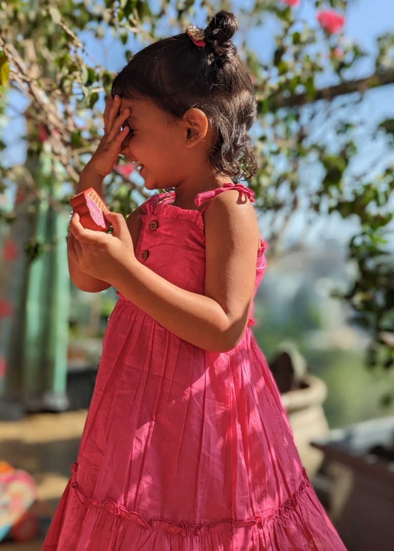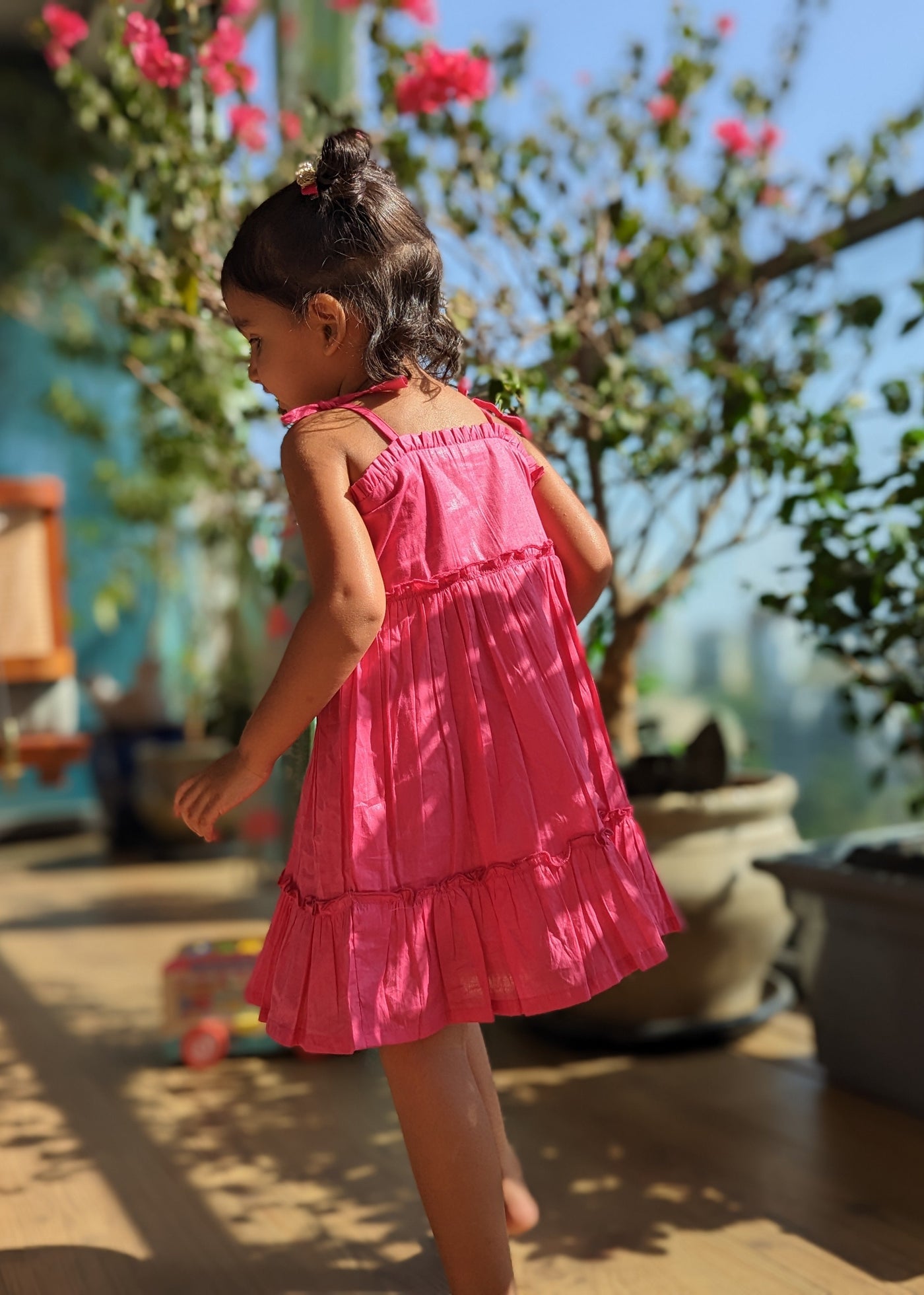 A fuss free and fashionable dress in pink to beat the heat this summer. Made of our signature cotton malmal with a soft malmal lining, this dress comes with adjustable tie-up straps for longer wear (yes we know how quickly our kids outgrow their pretty clothes)