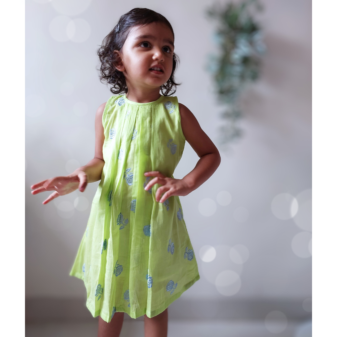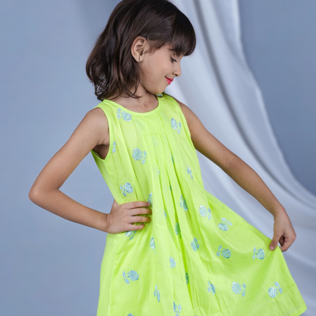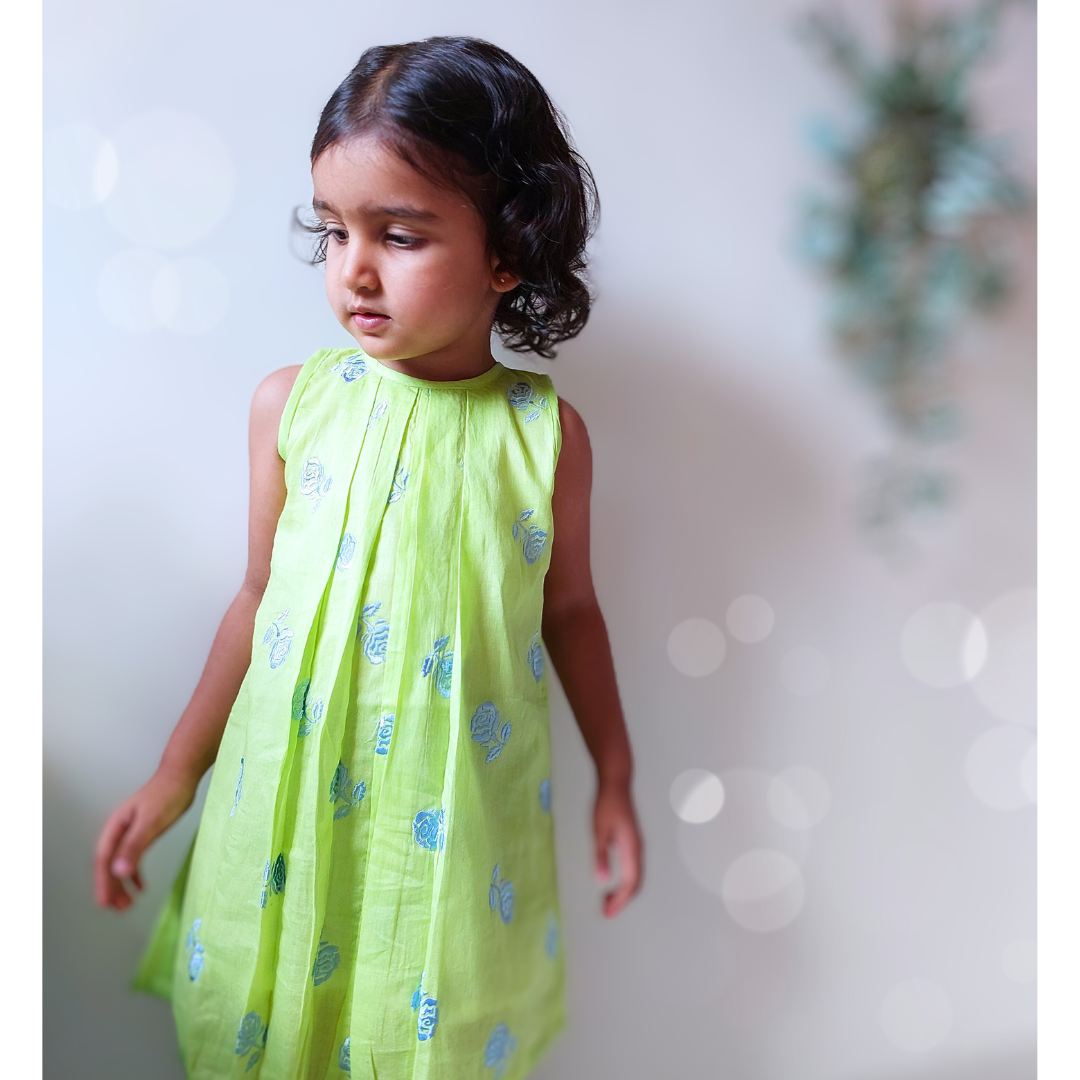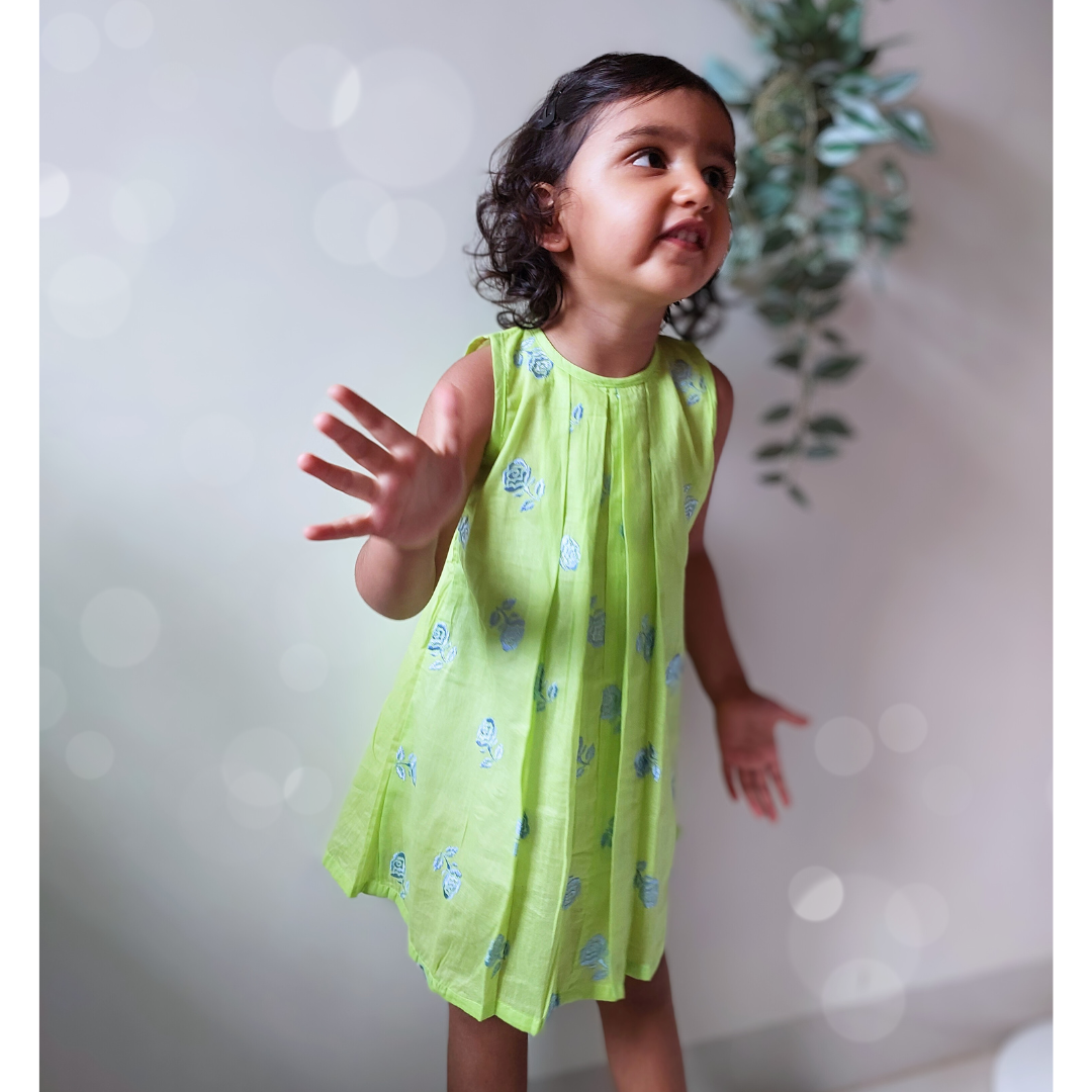 Embroidered Mal Cotton Dress | Rose Green | 1-12Y