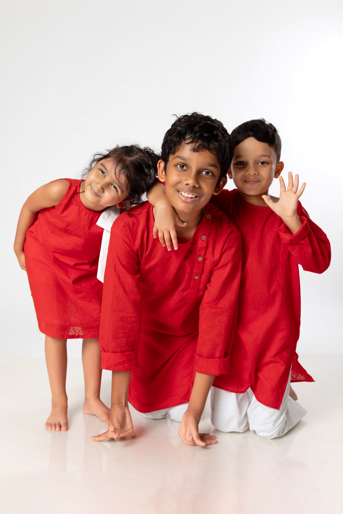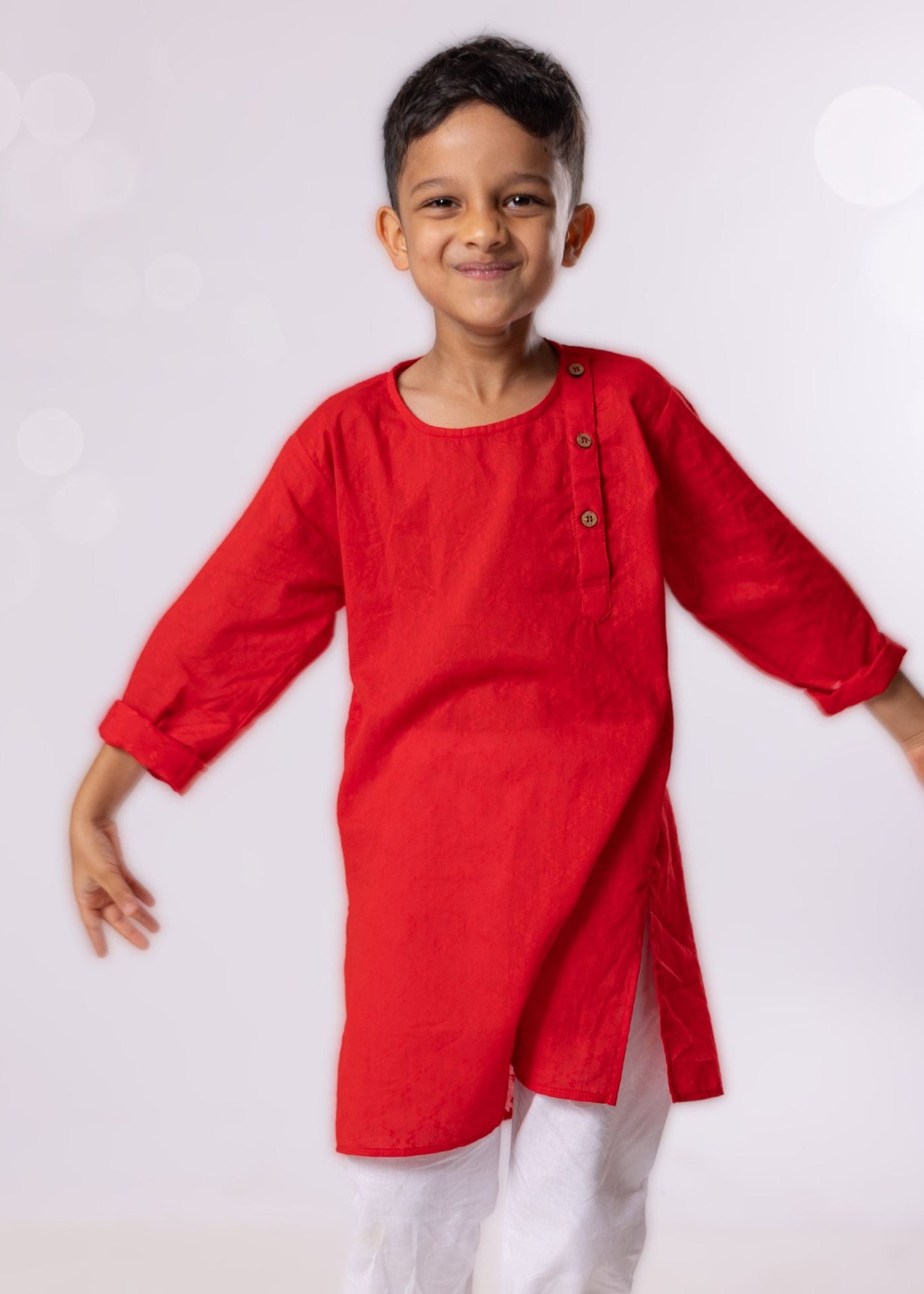Cotton Kurta for Boys, Men | Colour Pop, Red