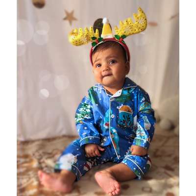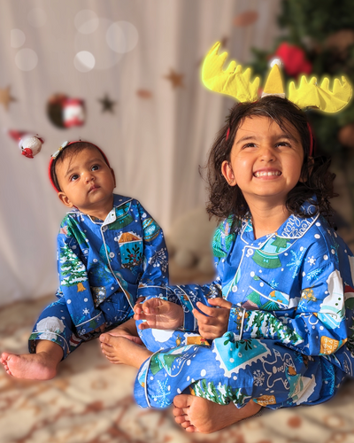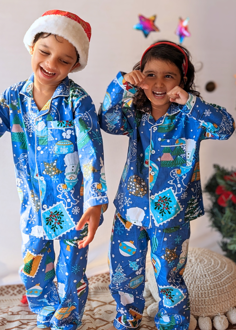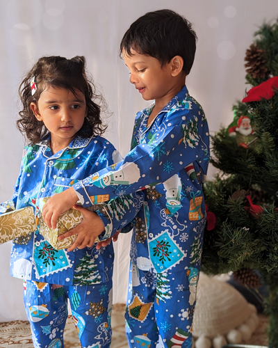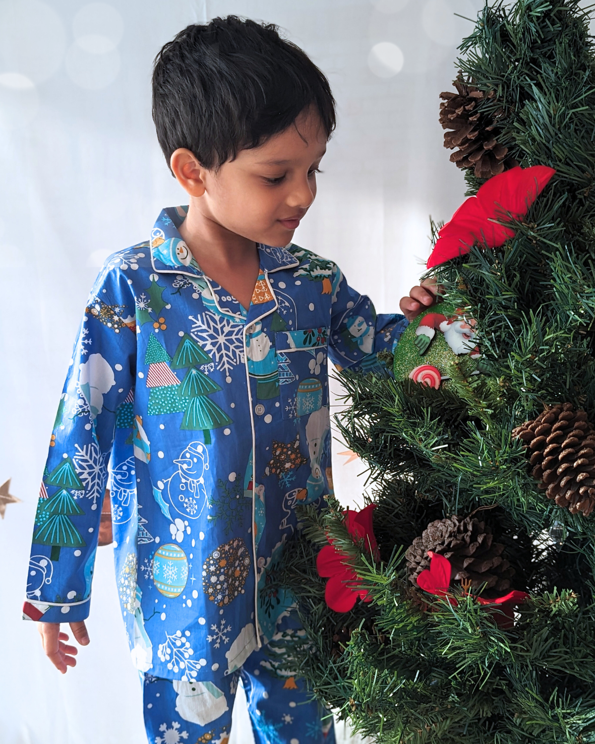 Cotton Night Suit for Kids | Jingle Bells - Blue