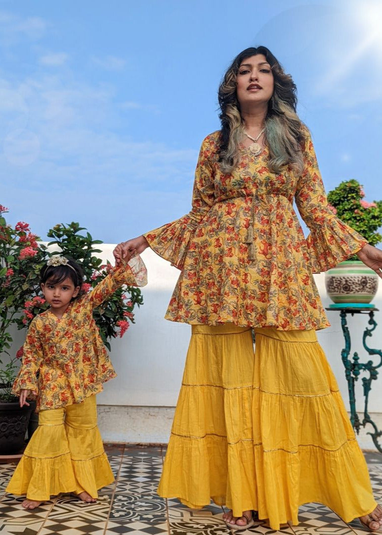 Cotton Malmal Kurta-Sharara Set | Bhil Tiger