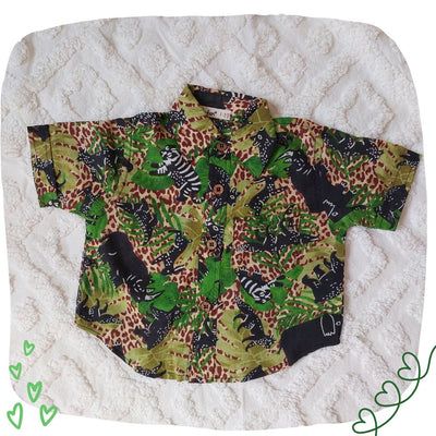 Jump into summer with our 🐘 Jungle Safari style Summer Shirt for Boys, Men! It's fun foliage and animal print will make your vacation memories extra wild! Made with soft modal fabric, your little partner in crime is sure to LOVE it!