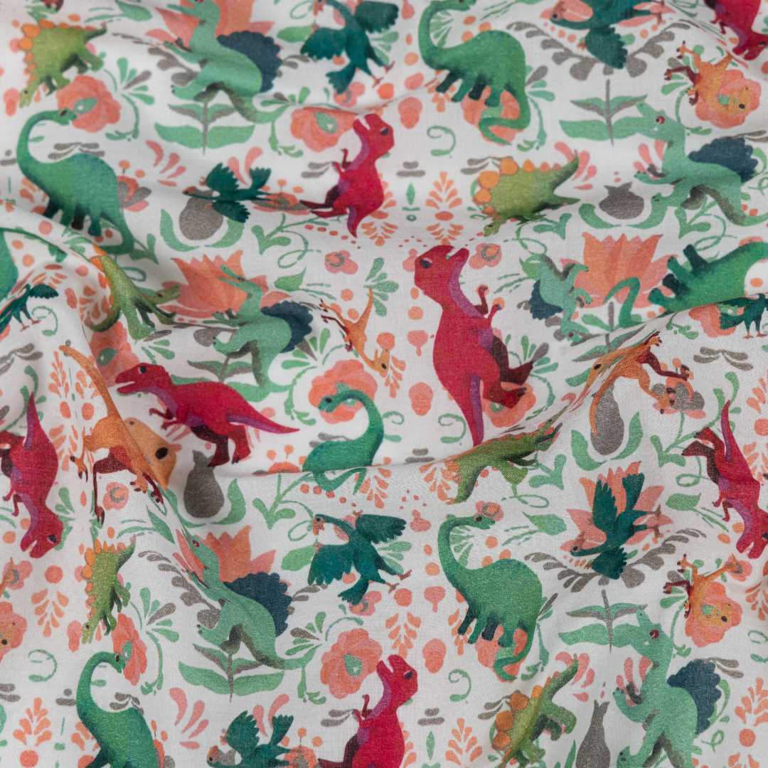 Cotton Malmal Fabric | Dino Roar