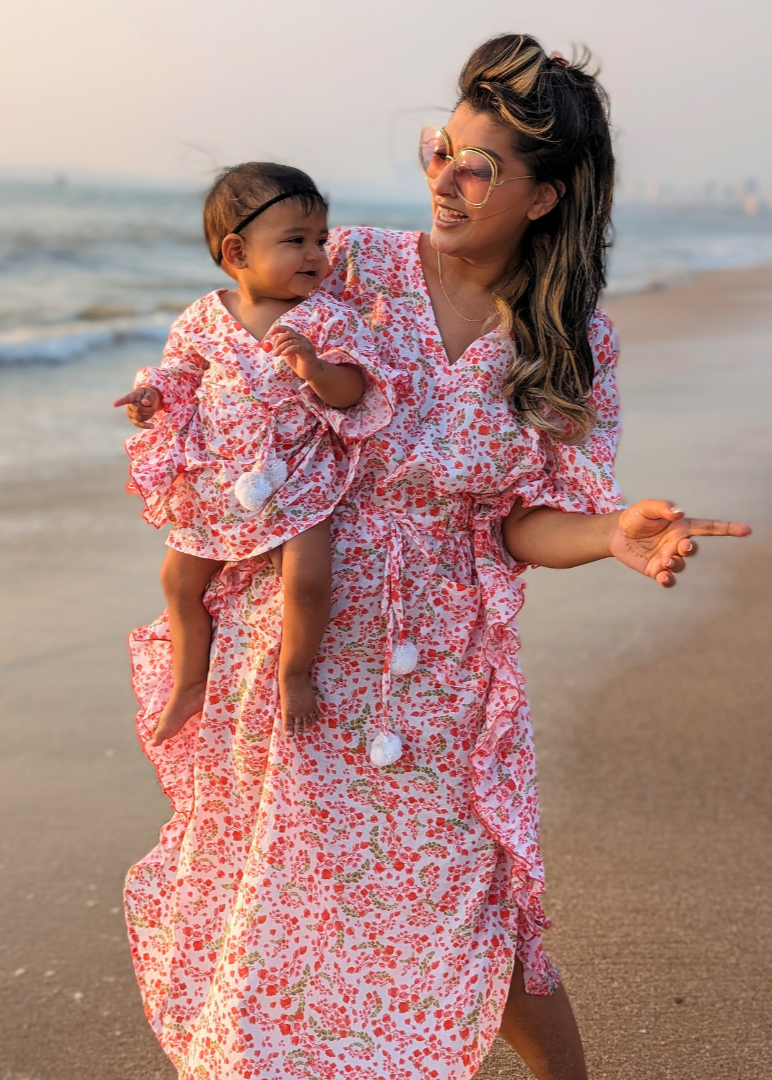 Soft as a cloud, our breezy malmal kaftans are the perfect beachwear, lounge-wear, vacation-wear, chill-at-home-and-do-nothing-wear. What's more, we have these in sizes for newborns all the way to adults, so you can twin with your babies, besties, sisters, everyone!