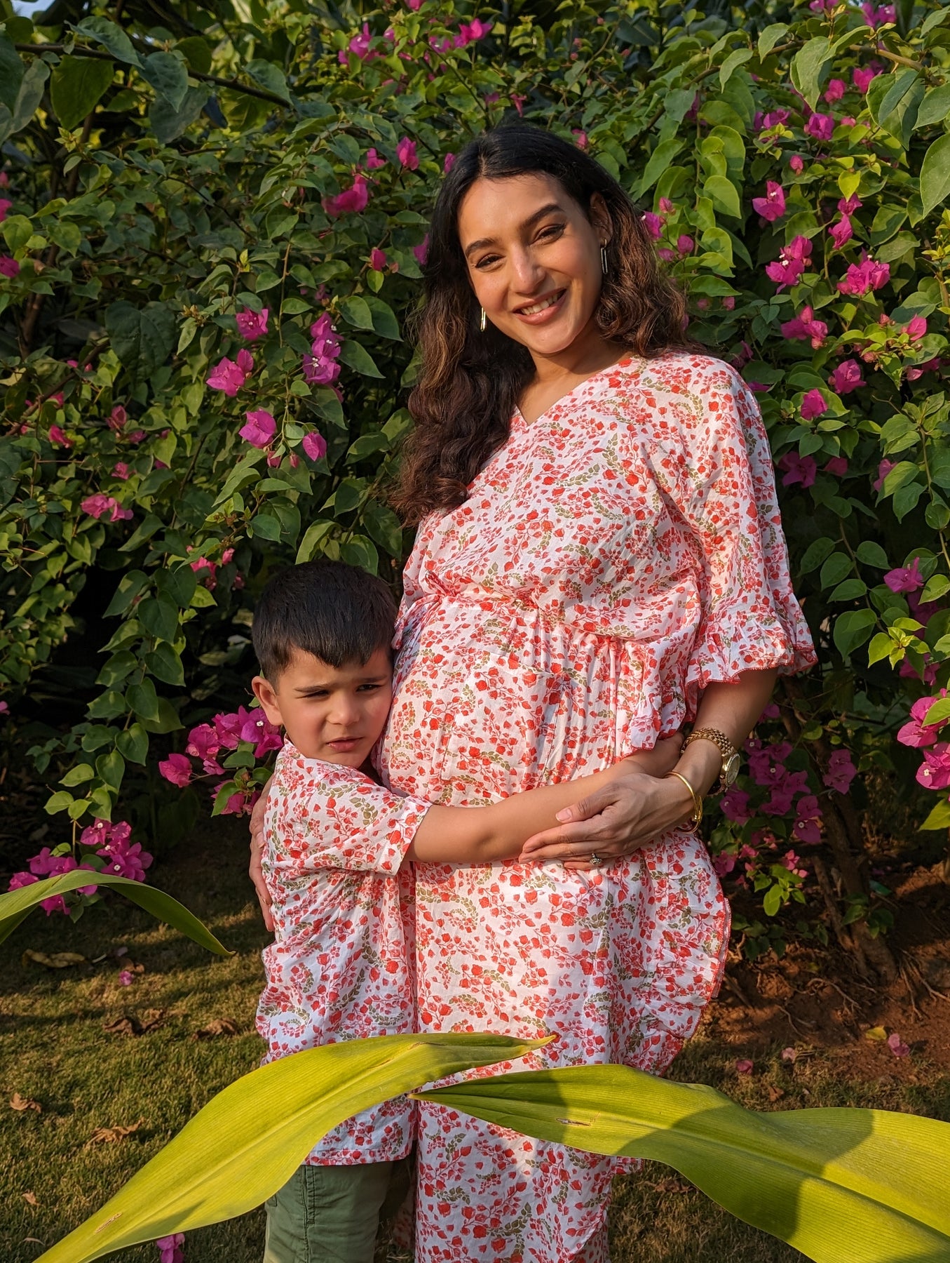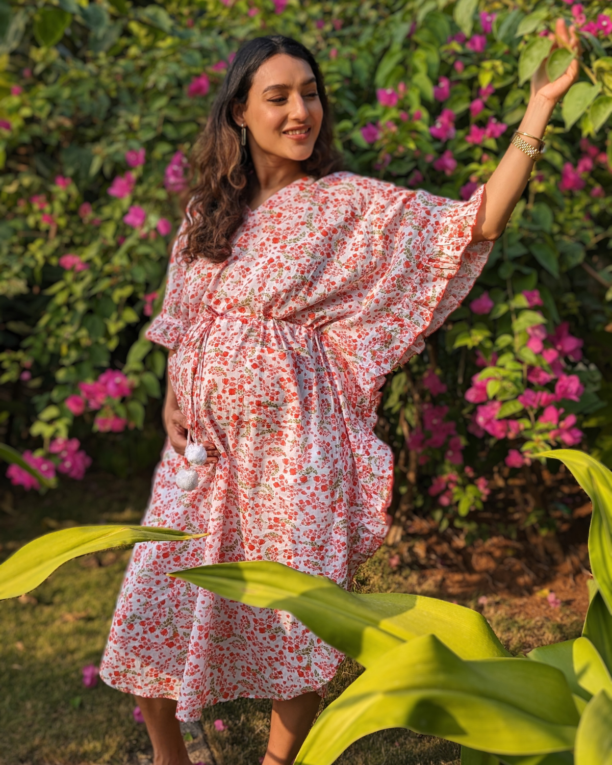 Bougainvillea print women’s cotton beach kaftan – tropical summer fashion