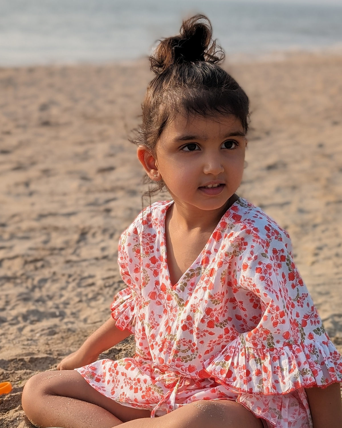 Sizing tips - Our kaftans and loose and breezy, with a tie string to tighten as you like. We dislike size labels on adult clothes and that's why our Adult size kaftan is a comfortable Free Size to cater to all body types.