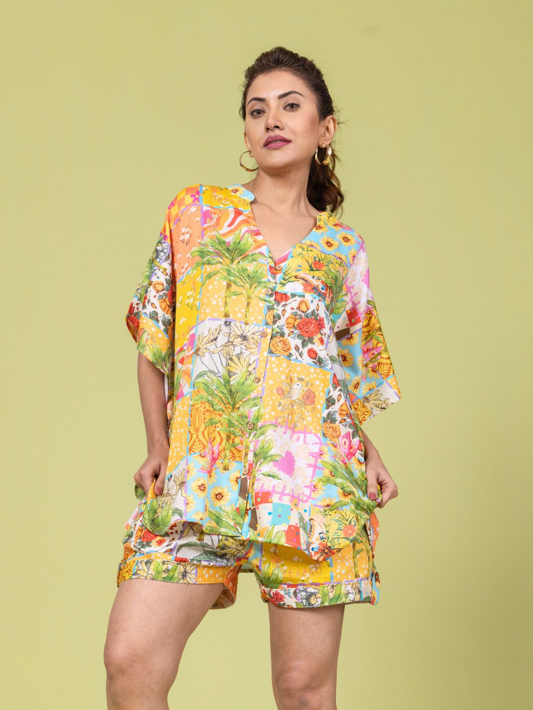 Upgrade your summer wardrobe with our Women's Shirt and Shorts Coord Set, designed for unbeatable comfort and effortless style. Crafted from soft, breathable cotton fabric, this coord set is perfect for casual outings, beach vacations, or just relaxing at home. The lightweight shirt features a flattering fit with trendy prints, while the matching shorts ensure all-day comfort. Whether you're lounging or exploring, this coord set keeps you cool and chic.
